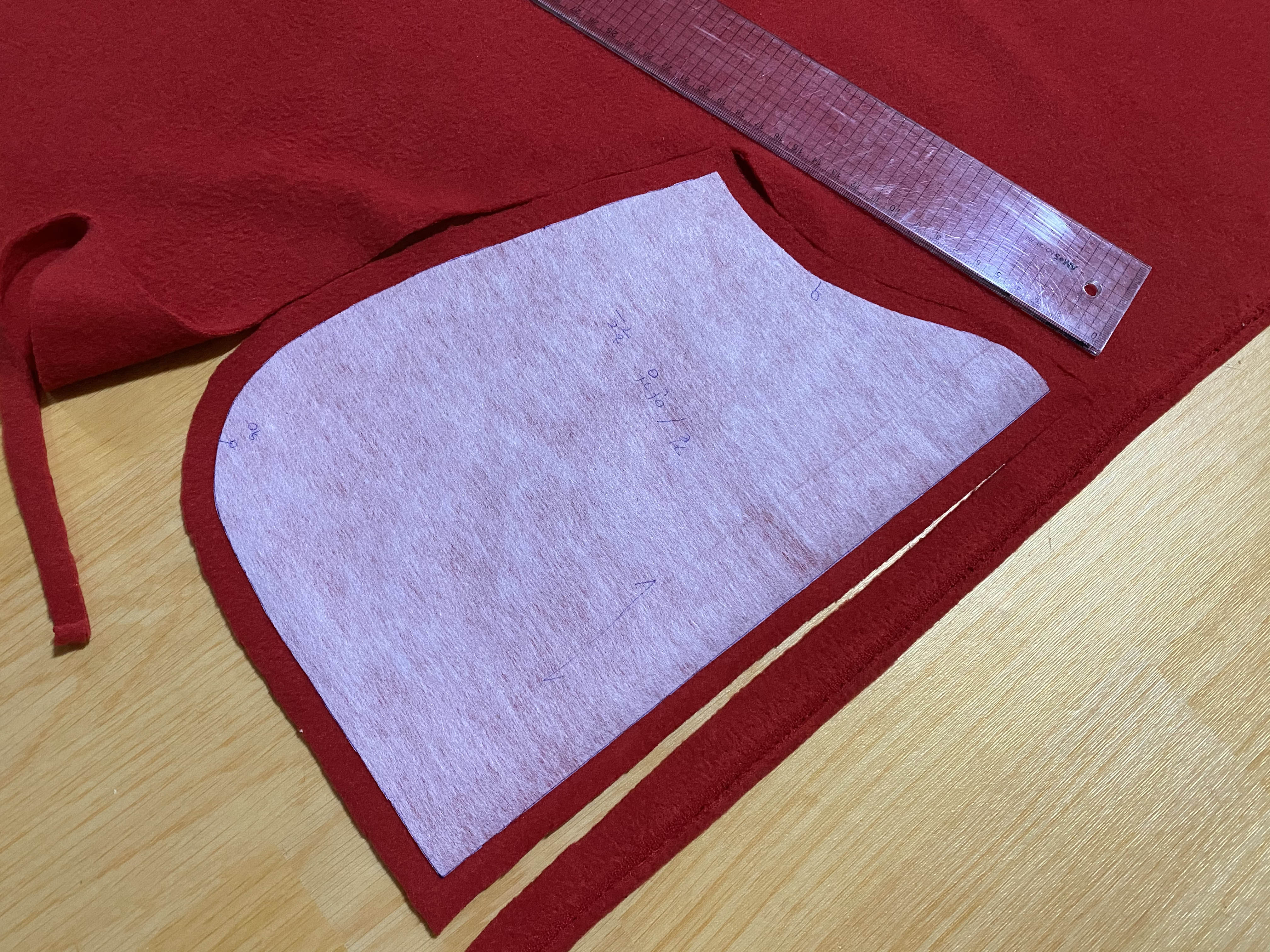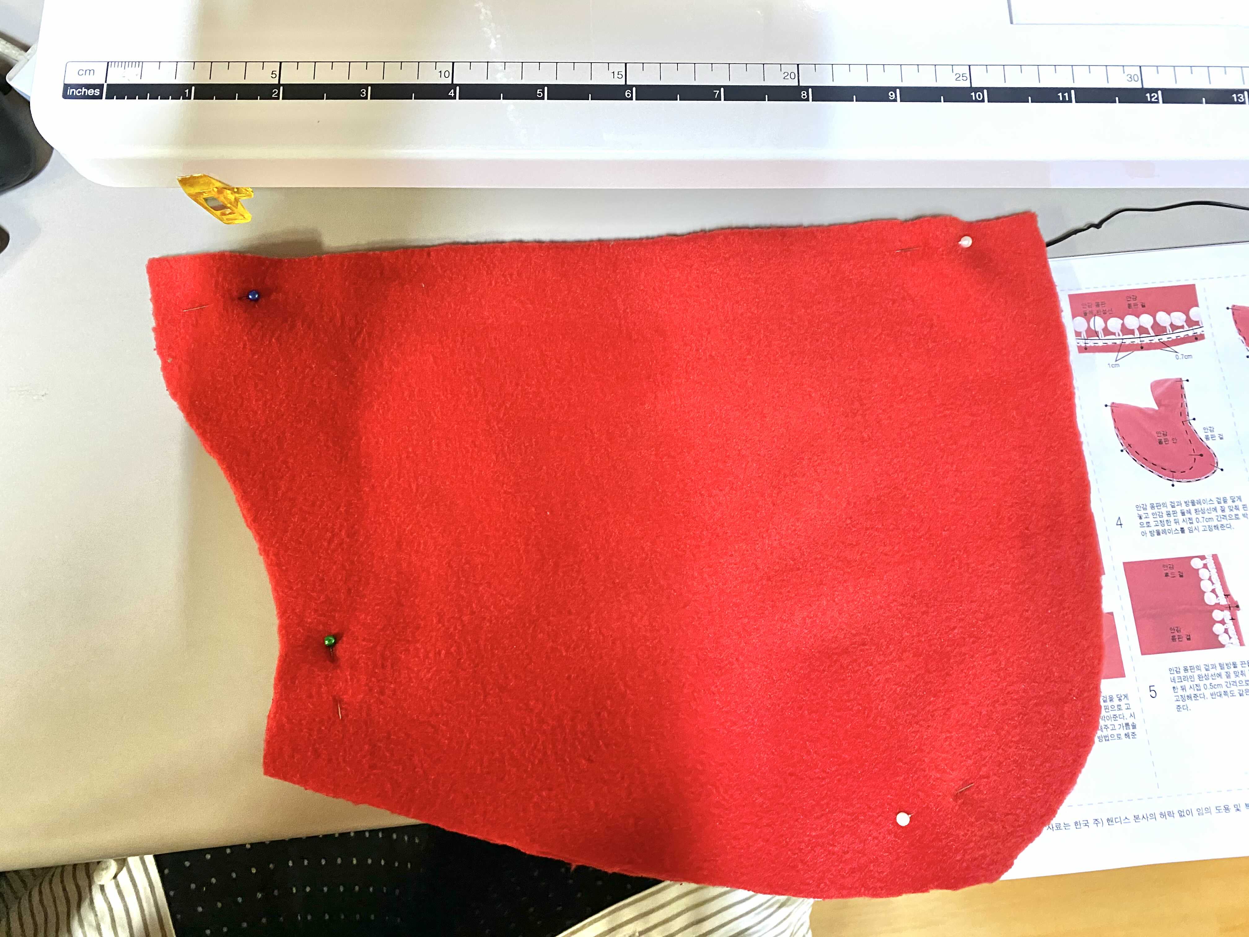 제대로 만들어보려고 망토 패턴과 패턴지를 사고 가장 작은 패턴을 패턴지에 그려주었습니다. 준비한 천에 대고 시접 1cm 씩 주어 재단했습니다.