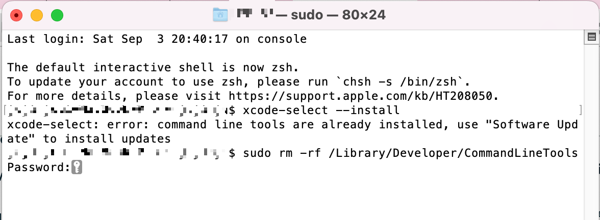 xcode-select: error: command line tools are already installed, use "Software Update" to install updates