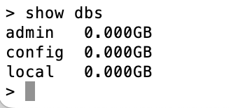 show dbs는 데이터베이스를 보여준다. 컴퓨터에 따라서 아래 3개가 모두 있지 않을 수도 있으니 문제는 아니다.